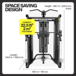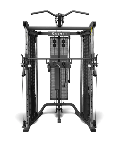 Engineered for serious results at home, the Centr Power Series SF6 Smith Functional Trainer delivers a complete full-body strength setup in a compact frame. The SF6 features a patented quick-change selectorized Smith Bar, a built-in weight multiplier for up to 350 lbs of resistance, dual 165 lb weight stacks, a frictionless 6-pulley cable system with 30 vertical positions, and an adjustable pull-up station. Built from heavy-duty, commercial-grade steel with a matte black powder-coated finish, it’s everything you need for real strength, every damn day.