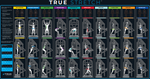 Full color illustrated display organized by muscle groups that